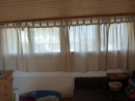 The landlady actually paid for the curtains and since we are moving out in 3 weeks, I started feeling guilty about leaving the silly-looking curtains behind, for them to be an eyesore for another innocent couple. So on Sunday...8 months later...I finally took them down to measure them all up again and make a proper hem with the sewing machine. I am ashamed to say this didn't even take me an hour...that was extreme laziness on my part not to have sorted them before.